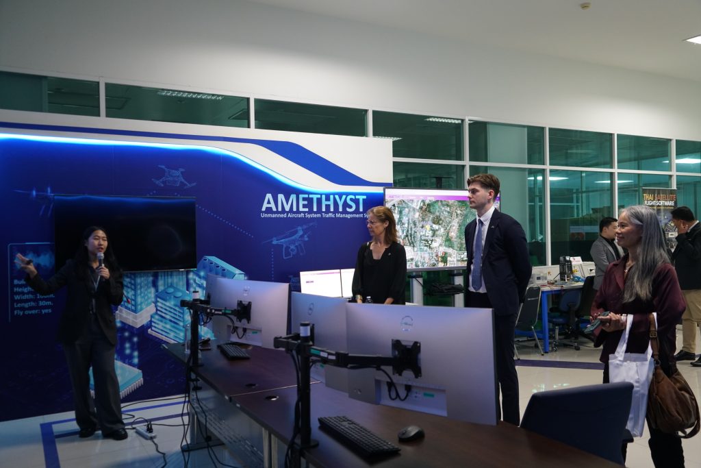 ในการศึกษาดูงานทางเอกอัครราชทูตฯ และคณะทำงาน ได้เยี่ยมชมในภารกิจด้านการพัฒนานวัตกรรมอวกาศ การปฏิบัติการดาวเทียม ทั้งการวางแผนถ่ายภาพ การรับสัญญาณ การผลิตข้อมูลดาวเทียม มีการเยี่ยมชมห้องปฏิบัติการและศูนย์วิจัยการปฏิบัติการดาวเทียม ศึกษาโครงสร้างพื้นฐานด้านการให้บริการทดสอบดาวเทียมและศูนย์วิจัยเทคโนโลยีอวกาศรวมไปถึงงานบริการด้านอวกาศของ GISTDA นอกจากนั้นยังมีการเข้าเยี่ยมชมสถานีรับสัญญาณของบริษัท Swedish Space Corporation (SSC) ที่เป็นความร่วมมือของ GISTDA กับ SSC บริษัทด้านอวกาศชั้นนำของประเทศสวีเดน ในพื้นที่ SKP